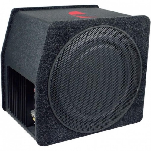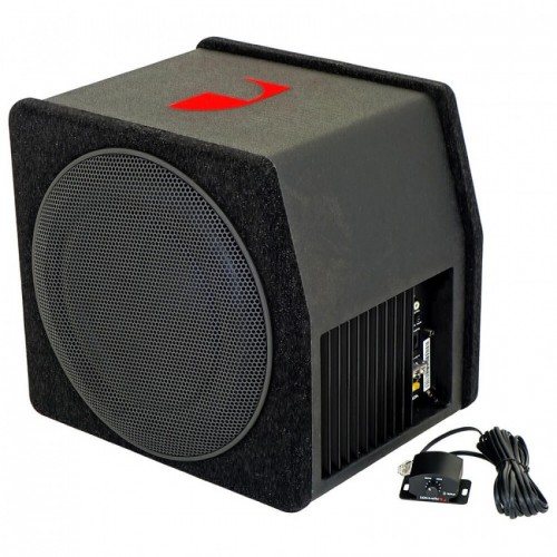 Для работы системы, применяется усилитель D-класса в компактном форм-факторе с довольно скромной мощностью – 100 Вт. В паре с высокочувствительным динамиком, на выходе достаточно структурированный бас с приличным звуковым давлением. Для точной настройки имеется полный набор инструментария: НЧ фильтр 40-160 Гц, переключатель фазы 0 - 180°, подтональный фильтр (subsonic) с фиксированной частотой 20 Гц, басовый эквалайзер (bass boost) на частоте 40 Гц и регулировкой уровня 0-12 дБ. Коммутация с источником сигнала - через RCA вход. Для удобства дистанционной регулировки уровня, в комплекте выносной регулятор. Благодаря примененному акустическому оформлению, сабвуфер не займет много места в багажном отделении. При этом порадует ударной волной качественного баса и достойным внешним видом.