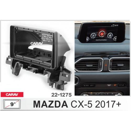 Переходная рамка Carav 22-1275 предназначена для установки 9" магнитолы с монтажным размером 230:220х130мм вместо штатной мультимедиа в автомобили Mazda CX-5 2017-2021