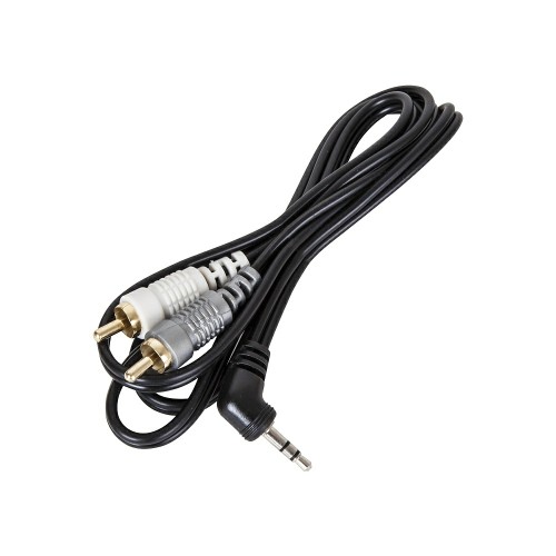 AUX 3.5 Jack - 2 RCA кабель Kicx AUX 352RCA, угловые наконечники 2 pin - прямые наконечники 2RCA, двойная ПВХ изоляция. Длина 1 метр.