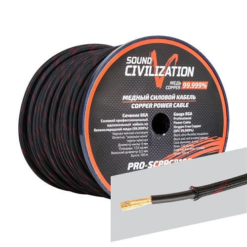 силовой профессиональный одножильный кабель Sound Civilization 8GA