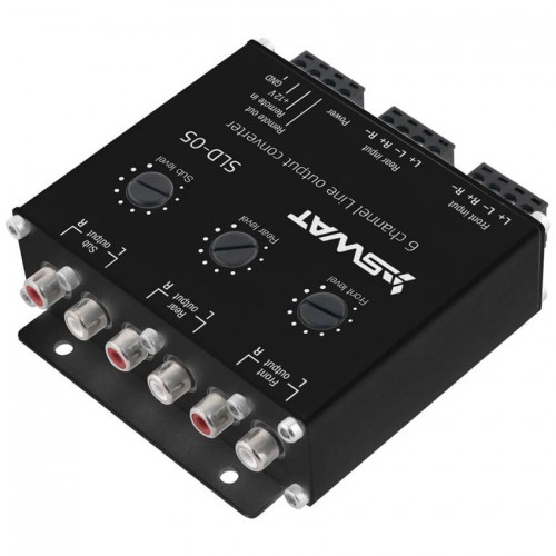 Активный конвертер уровня сигнала SLD-05, позволяет подключать усилители к головным устройствам без линейных выходов RCA. Сигнал высокого уровня (напряжения) с проводов акустических систем преобразуется его в сигнал низкого уровня (напряжения) с выходами RCA. Входы высокого уровня – 4 канала, выходы RCA – 6 каналов (фронт, тыл, сабвуфер) с регулировками выходного уровня по полосам. Элементная база достаточного уровня, что важно для передачи качественного музыкального сигнала без искажений. Обладает низким уровнем собственных шумов.