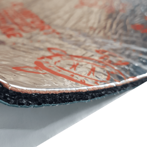 Рабочая часть шумоизоляционного материала состоит из шумоизоляционной прослойки, накрытой плотной тонкой звукоизоляционной мембраной. Финальный алюминизированный слой позволяет нам получить высокую адгезию для следующего слоя, в качестве которого мы рекомендуем использовать мягкий шумопоглотитель. Мы получаем не только удобство и легкость монтажа, абсолютную влагостойкость, высокую эластичность и адгезию к вертикальным поверхностям, но и самое главное — небывалую среди аналогичных материалов легкость, что впервые в России дает нам возможность использовать мембранные материалы на крыше автомобиля.