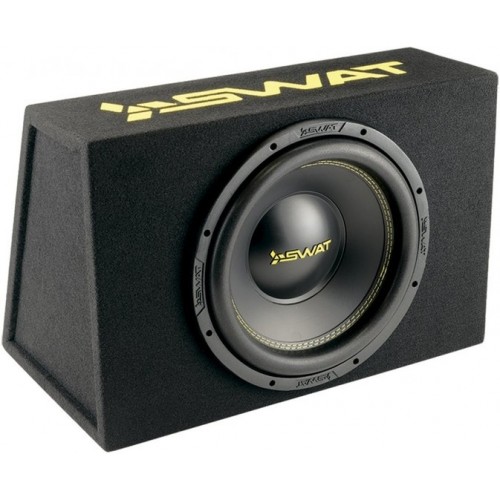 MAS-12SB пассивный сабвуфер закрытого типа. Корпус в виде прямоугольной трапеции. Такая форма позволяет устанавливать сабвуфер вплотную к спинке задних сидений автомобиля. Изготовлен из МДФ и отделан карпетом темного-серого цвета. Вышивка логотипа SWAT дополняет дизайн сабвуфера. Клеммник для коммутации с усилителем, расположен на правой панели корпуса.