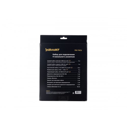 Премиальные наборы SWAT для подключения усилителей, в состав которых входят кабели исключительно из меди высокой степени очистки! Силовые кабели (на плюсовую клемму) серии Professional дополнительно защищены оплеткой типа «змейка», во избежание контакта с агрессивной средой под капотом. Для быстрой инсталляции обжаты кольцевыми наконечниками. Межблочный кабель серии Classic изготовлен по технологии витая пара с экраном. Акустический кабель серии Professional оптимальной длины и сечения. Управляющий кабель (remote) в традиционном синем цвете. Держатель предохранителя с самым популярным предохранителем типа miniANL. Дополнительные монтажные аксессуары для наиболее легкой установки. Коробка с окнами TouchMe позволяет убедиться в качестве компонентов без необходимости ее вскрытия.