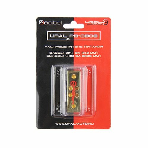 Высококачественные распределители питания серии Decibel для установки сразу нескольких автомобильных усилителей. Выполнен из позолоченного цинкового сплава.