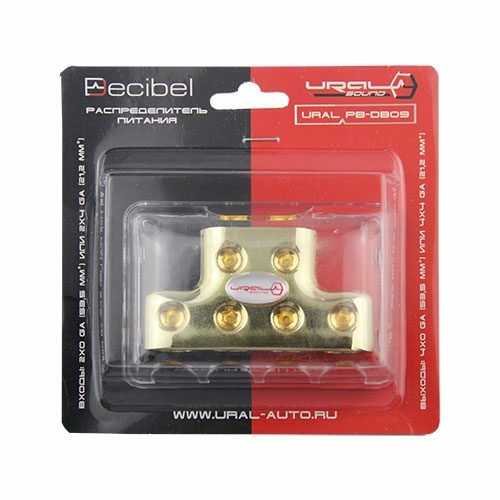Высококачественные распределители питания серии Decibel для установки сразу нескольких автомобильных усилителей. Выполнен из позолоченного цинкового сплава.