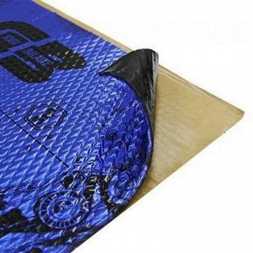 Бюджетный вибропоглощающий мастичный материал; состав: алюминиевой фольга, липкий полимерный слой, защищенный антиадгезионной бумагой: применение: все элементы автомобиля; толщина: 4мм